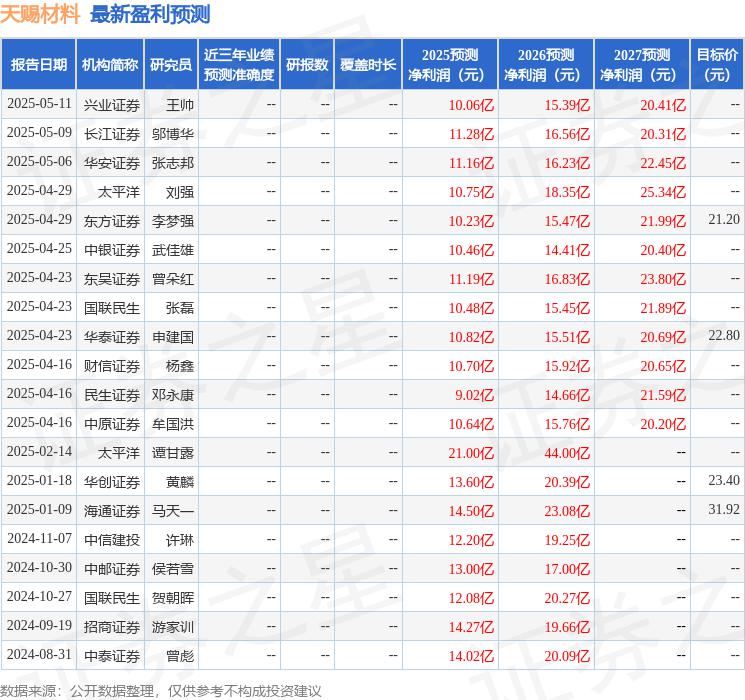 天风证券(601162)股份有限公司孙潇雅近期对天赐材料(002709)进行研究并发布了研究报告《电解液格局有望出清,新品类加大投入》,给予天赐材料中性评级。